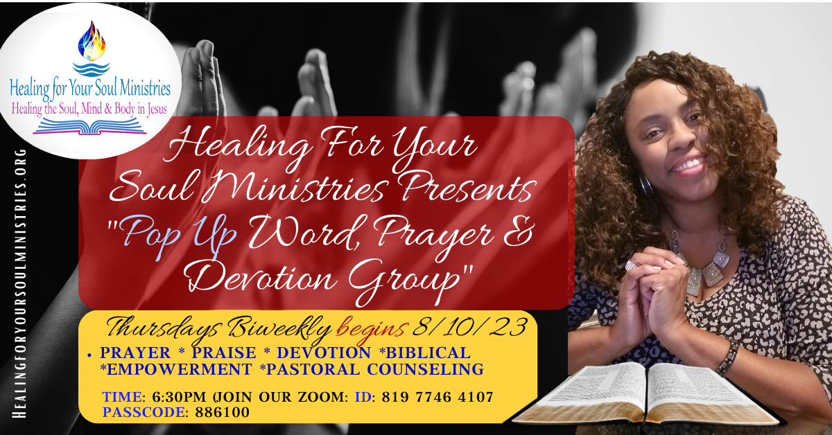 Join us at out new “Thursday Pop-up Word, Prayer & Devotion Fellowship!” By popular demand, I had request to reboot my Pop-up Prayer, Devotion & Word Fellowship Group but on Zoom instead of group calls. I’m hosting it biweekly on Thursdays at 6:30pm beginning August 10th. should anyone have a specific prayer need, comment below so we can all agree during our moment of prayer.