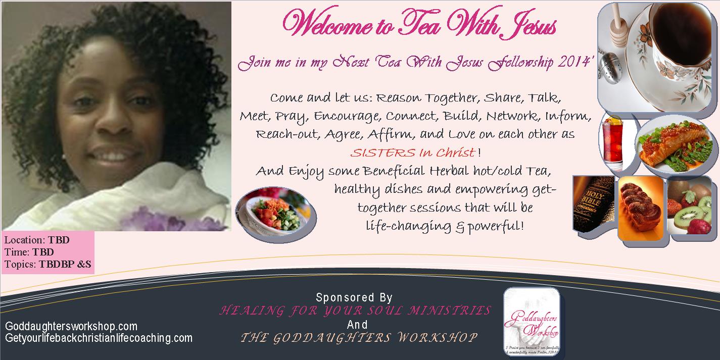 Where a few of us believers get together to reason, pray, share, testify, and proclaim the Word of God according to the season, while having Tea. This ministry was birth years ago from my own personal time of: Meditating, Prayer, and Talking with the Lord as I make and drink Herbal tea Every morning, and sitting on my sofa.
